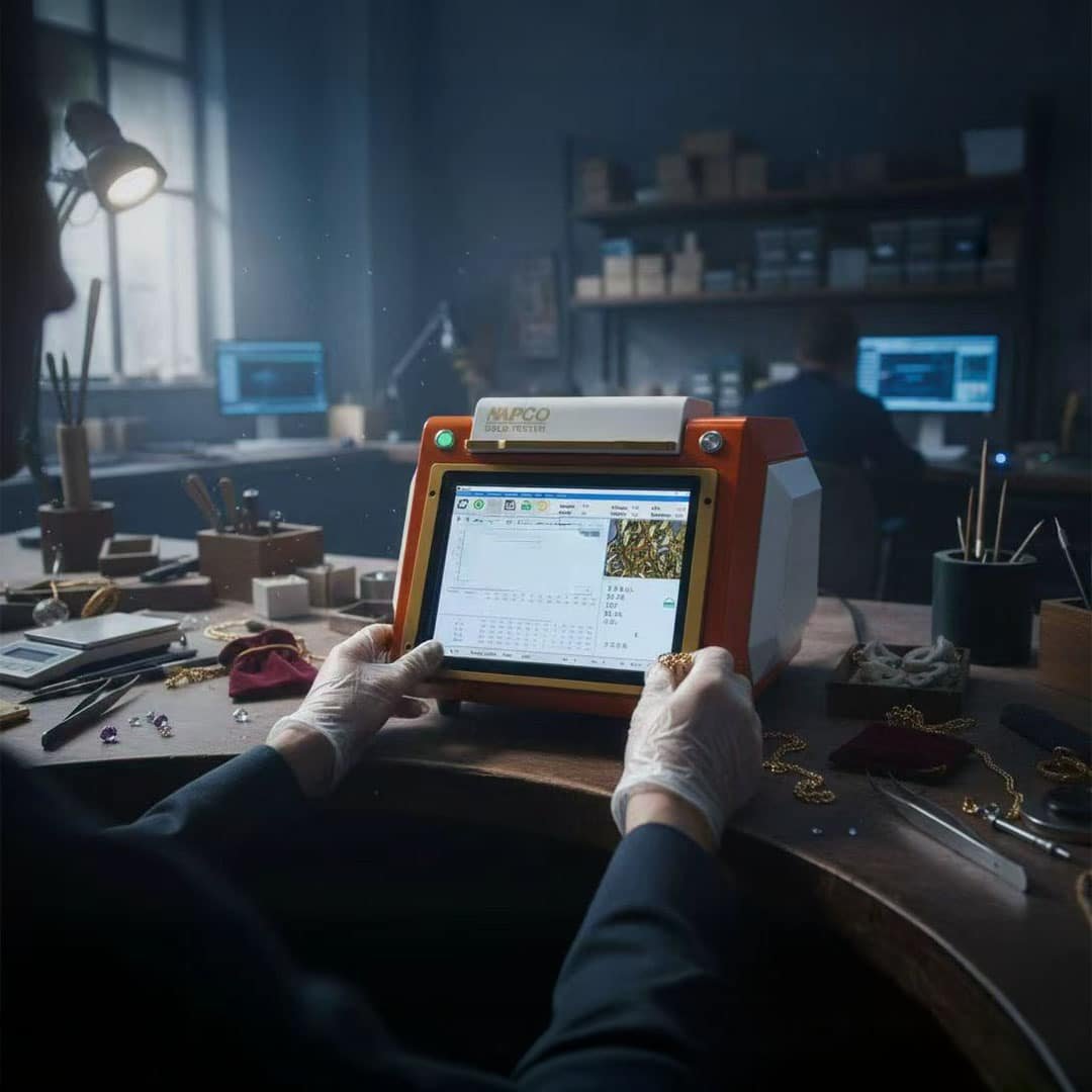 In under 60 seconds, the Napco V1 non-destructively reveals the exact elemental composition, weighs the item, and prints a certified label. It transforms your counter from a place of guesswork into a center of professional precision and profit protection.